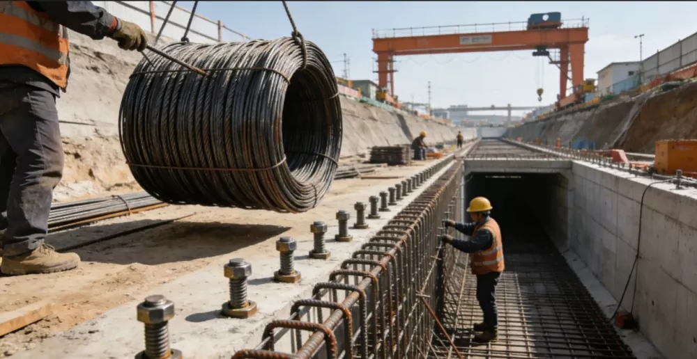 Typický případ: Projekt vládní potrubní galerie v určitém městě v Tianjinu, přizpůsobený vysokopevnostní ocelový svitek HRB500 (průměr 10 mm), mez kluzu ≥ 500 MPa, pevnost v tahu ≥ 630 MPa, splňující požadavky na dlouhodobé podzemní vlhké prostředí pro potrubní galerie. Po vodotěsném balení a přepravě je zpracována a vyztužena předem zapuštěnými šrouby s dávkou 190 tun, což účinně zlepšuje odolnost proti prasklinám a únosnost konstrukce potrubní galerie, splňuje normy pro akceptaci komunálního inženýrství a zajišťuje bezpečný provoz potrubní galerie.