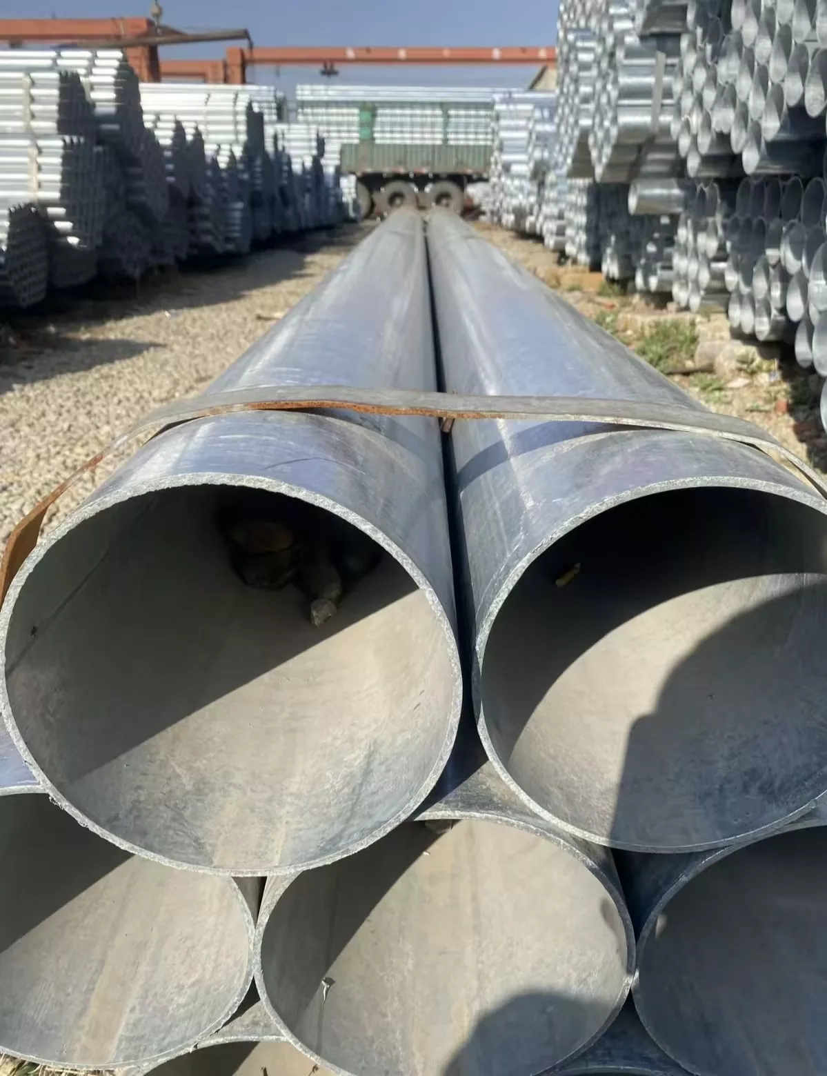 Z hlediska výběru materiálu se používají vysoce kvalitní svařované trubky SAW jako Q235B/Q345B/X70. Využívá se pokročilé oboustranné svařování pod tavidlem a žárové zinkování proti korozi. Výrobní proces zahrnuje tři pasivační procesy pro zlepšení odolnosti galvanizovaného produktu vůči alkalické korozi, což vede k hustým a vysoce pevným svarům. Každý hotový výrobek je před zabalením a odesláním vysušen, zkontrolován a jemně opraven. K dispozici je široká škála specifikací s 236 vyrobenými specifikacemi. Podporuje se také přizpůsobení velkoprůměrových silnostěnných trubek.